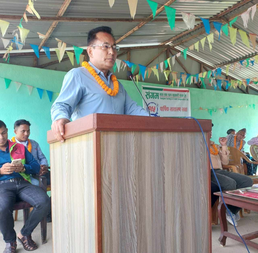 सिन्धुलीको कमलामाई नगरापलिका वडा नम्बर ५ स्थित संगम बचत तथा ऋण सहकारी संस्थाको १५ औं साधारण सभालाई सम्बोधन गर्दै उनले सहकारी देशको अर्थतन्त्रको एक खम्बा भए पनि सो खम्बा ठुला ब्यापारी र नेताहरूको कारण धराशायी बनेको बताए ।