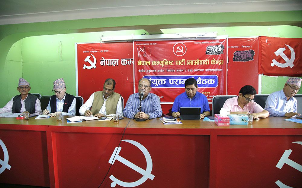 हिजोदेखि पार्टी केन्द्रीय कार्यालय पेरिसडाँडामा सुरु भएको बैठकमा हिजो नै आयोगका प्रमुख तथा सदस्य गरी ४० जनाले सुझाव राखेका थिए । आज विहानबाट सुरु भएको बैठकमा अध्यक्ष पुष्पकमल दाहाल ‘प्रचण्ड’सहित केन्द्रीय पदाधिकारीहरुले सम्बोधन गरेपछि बैठक सकिएको छ ।