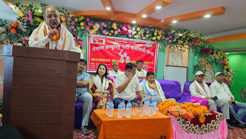 नेकपा माओवादी केन्द्र मिचैया नगर समिति सिरहाले आज विहान गरेको कार्यकर्ता भेटघाटलाई सम्बोधन गर्दै उनले जनताको संघर्षका बलमा जारी भएको संविधानको रक्षा र कार्यान्वयनमा निरन्तर खबरदारी गर्नु जनताको दायित्व भएको बताए ।