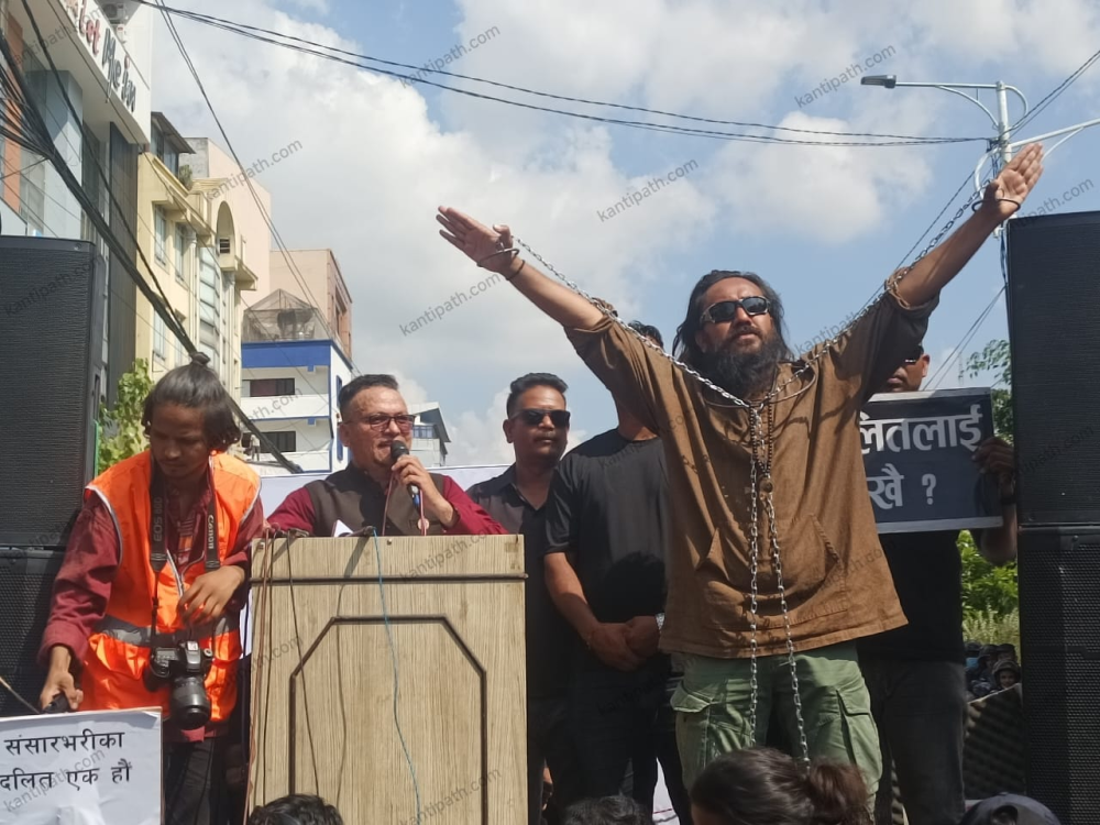 काठमाडौँ । दलितका लागि संविधानमा उल्लेख भएका अधिकारहरूको पालना नभएको भन्दै माइतीघरबाट ‘दलितलाई खै’ भन्दै जुलुस निकालिएको छ । वर्तमान सरकारमा समेत प्रतिनिधित्व नभएको भन्दै लामो समयदेखि प्रदर्शन गरिरहेका प्रदर्शनकारीले वृहत् जुलुस निकालेका हुन् ।
