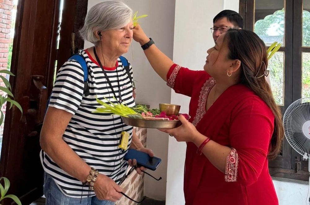 काठमाडाैं । तनहुँको पर्यटकीय नगरी बन्दीपुर भ्रमणका लागि आएका विदेशी पर्यटक दसैँको टीका लगाउन पाउँदा दङ्ग परेका छन् । केही दिनदेखि बन्दीपुरमा रहेका विभिन्न देशका पर्यटक शनिबार दसैँको टीका लगाउन पाउँदा दङ्गसँगै खुसी भएका थिए ।