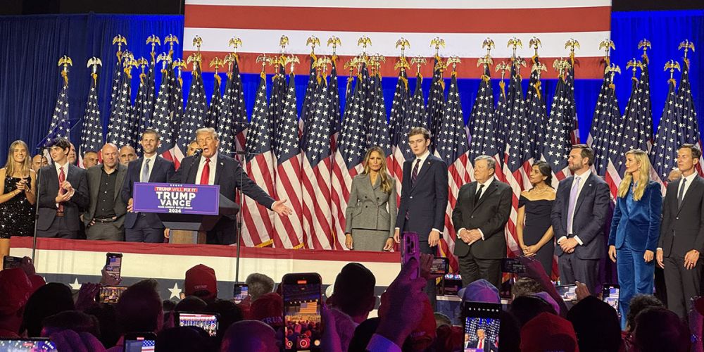 ट्रम्पले आफ्नो जितको घोषणा गर्दै पत्नी मेलानिया ट्रम्पलाई धन्यवाद दिएका छन्। सम्बोधनका क्रममा उनले पत्नी मेलानियालाई अमेरिकाकी ‘फर्स्ट लेडी’ समेत घोषणा गरेका छन्। ट्रम्पले आफ्ना सन्तानहरूलाई पनि धन्यवाद दिएका छन्ए। स्टेजमा उभिएका आफ्ना सन्तानको नाम लिँदै ट्रम्पले उनीहरूको प्रशंसा गरेका छन्।