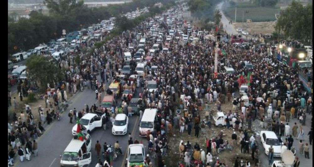 मध्य इस्लामावादको ठूलो शहर स्क्वायर डी चोकमा धेरै महत्त्वपूर्ण सरकारी भवनहरू नजिक उक्त प्रदर्शन भइरहेको छ ।