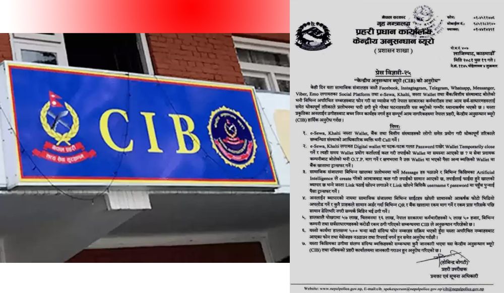 ‘यस्तो कार्यमा हालसम्म ५०० भन्दा बढी सन्दिग्ध फोन नम्बरहरू सक्रिय भएको हुँदा यस्ता अपरिचित नम्बरबाट आएको फोन तथा मेसेजहरू नउठाउन र रिप्लाई नदिन’ सिआइबीले आग्रह गरेको छ ।