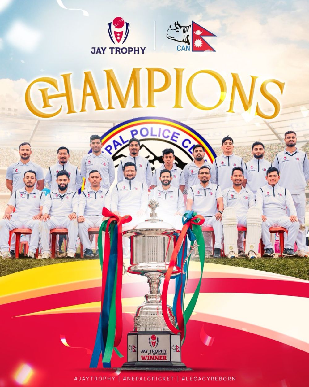 त्रिभुवन आर्मी क्लबविरुद्ध २८ रनको जित निकाल्दै नेपाल पुलिस क्लबले जय ट्रफी पुरुष एलिट कपको च्याम्पियन भएको हो ।