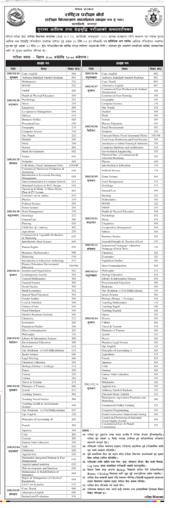 राष्ट्रिय परीक्षा बोर्डले आज एक सूचना प्रकाशित गर्दै साधारण तथा आंशिकतर्फको परीक्षा तालिका सार्वजनिक गरेको हो ।