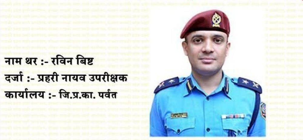 काठमाडौं । जिल्ला प्रहरी कार्यालय पर्वतका प्रहरी नायब उपरीक्षक (डिएसपी) रविन विष्ट गण्डकी प्रदेशको उत्कृष्ट प्रहरी बनेका छन्।