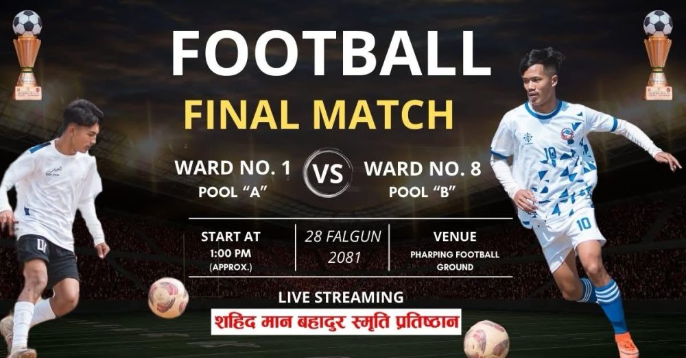 प्रतियोगिताको फाइनल खेल फर्पिङ खेल मैदानमा दिउँसो १२:३० बजेबाट सुरु हुनेछ। आयोजक समितिले खेलाडीहरूको हौसला बढाउन तथा कार्यक्रमको शोभा बढाउन सम्पूर्ण खेलप्रेमी तथा स्थानीयवासीलाई उपस्थितिका लागि निमन्त्रणा गरेको छ।