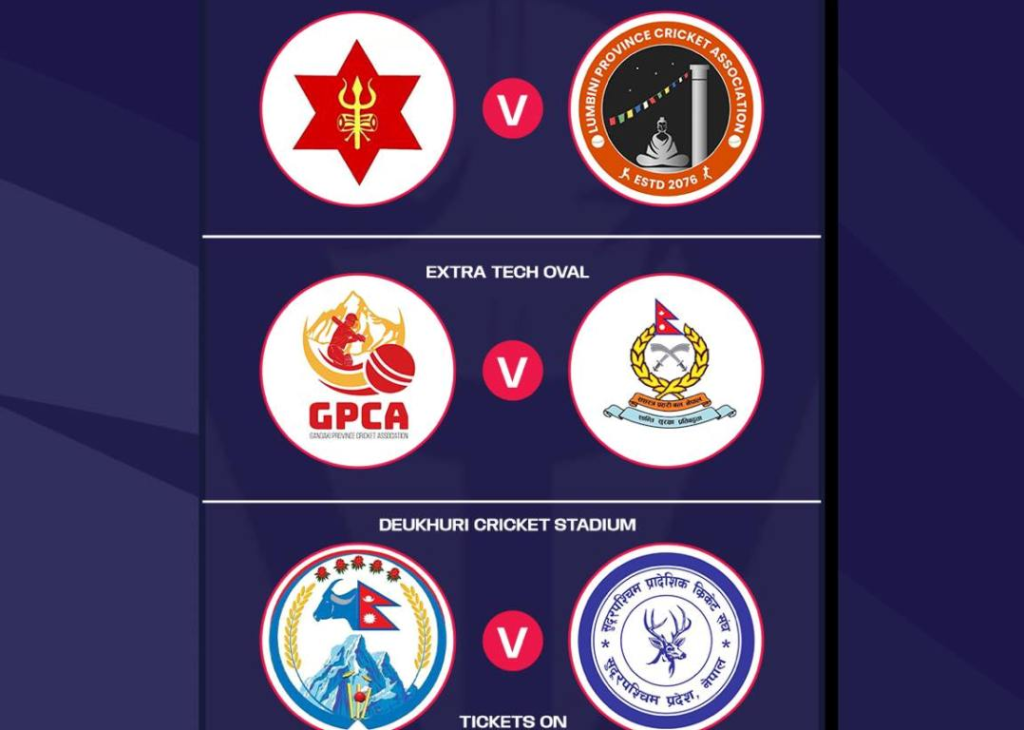 आर्मी र लुम्बिनीको खेल सिद्धार्थनगर क्रिकेट स्टेडियममा हुँदैछ भने एपिएफ र गण्डकीको खेल ओभर क्रिकेट मैदानमा हुँदैछ। कोशी र सुदूरपश्चिम प्रदेशको खेल देउखुरी क्रिकेट मैदानमा हुनेछ।
