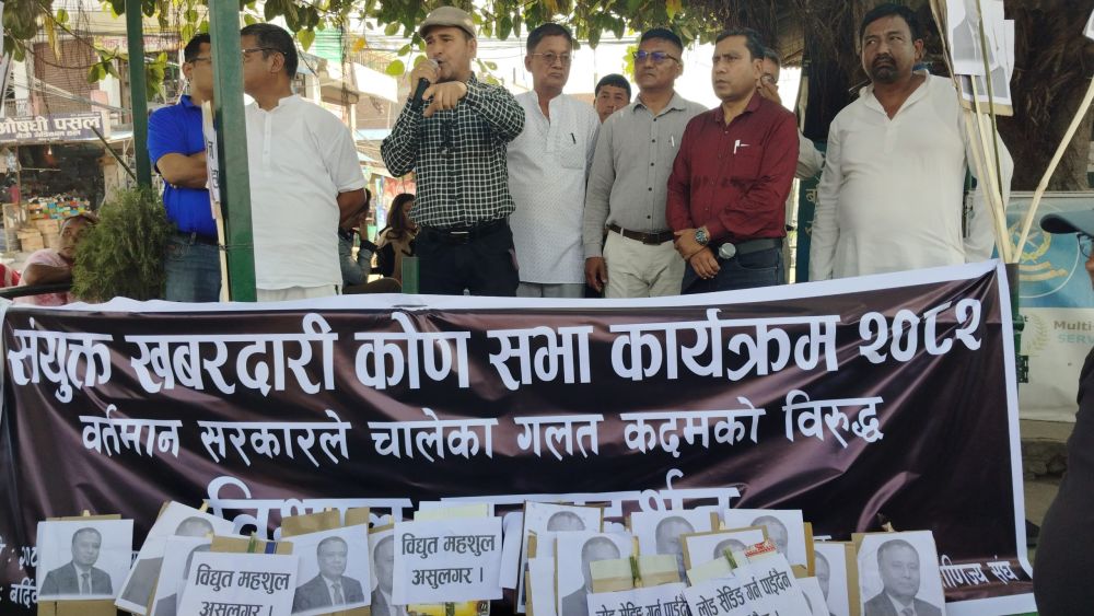 कोणसभालाई सम्बोधन गर्दै बर्दिवास उधोग बाणिज्य संघका अध्यक्ष बिष्णु खडकाले सरकारको पक्ष-विपक्ष भन्दा पनि वेथितिका विरुद्ध खबरदारी भएको धारणा राखे कुलमानलाई हटाएदेखी अघोषित लोडसेडिङ भएको जिकिर गर्दै जनप्रतिनिधिहरुले जनताको पक्षमा काम गर्न नसकेको आरोप लगाए ।