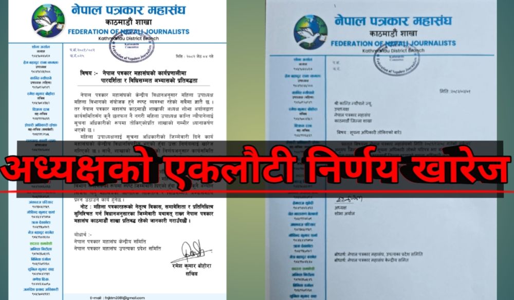 • सूचना अधिकारी नियुक्तिमा विवाद : महासंघ काठमाडौं शाखाद्वारा निर्णय खारेज