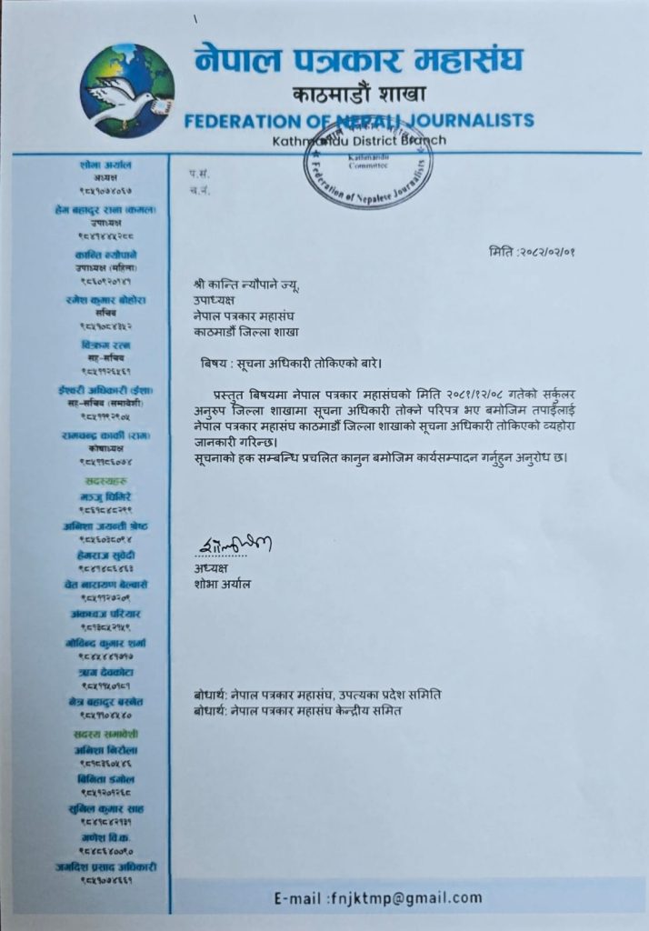 सूचना अधिकारी नियुक्तिमा विवाद : महासंघ काठमाडौं शाखाद्वारा निर्णय खारेज