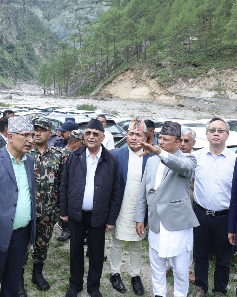 प्रधानमन्त्री केपी शर्मा ओलीसहित उच्च सरकारी टोलीले ‘भोटेकोशी’ भनेर चिनिने ल्हेन्देखोलामा आएको बाढीबाट भएको क्षतिको स्थलगत अवलोकन गरेका छन्।