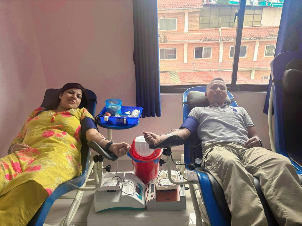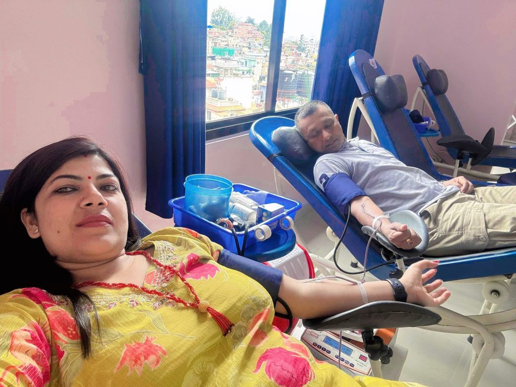 काठमाडौं । राजधानीस्थित सिभिल अस्पतालमा उपचाररत घाइतेलाई B Positive रगत आवश्यक भएको जानकारी सार्वजनिक भएलगत्तै अधिवक्ता राधिका खतिवडा र उनका श्रीमान् नेपाल प्रहरीका बहालवाला डिएसपी शिवराज बुढाथोकीले संयुक्त रुपमा रक्तदान गरेका छन्।