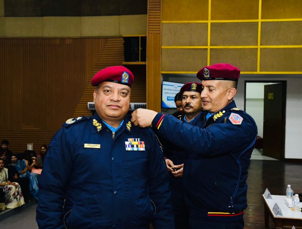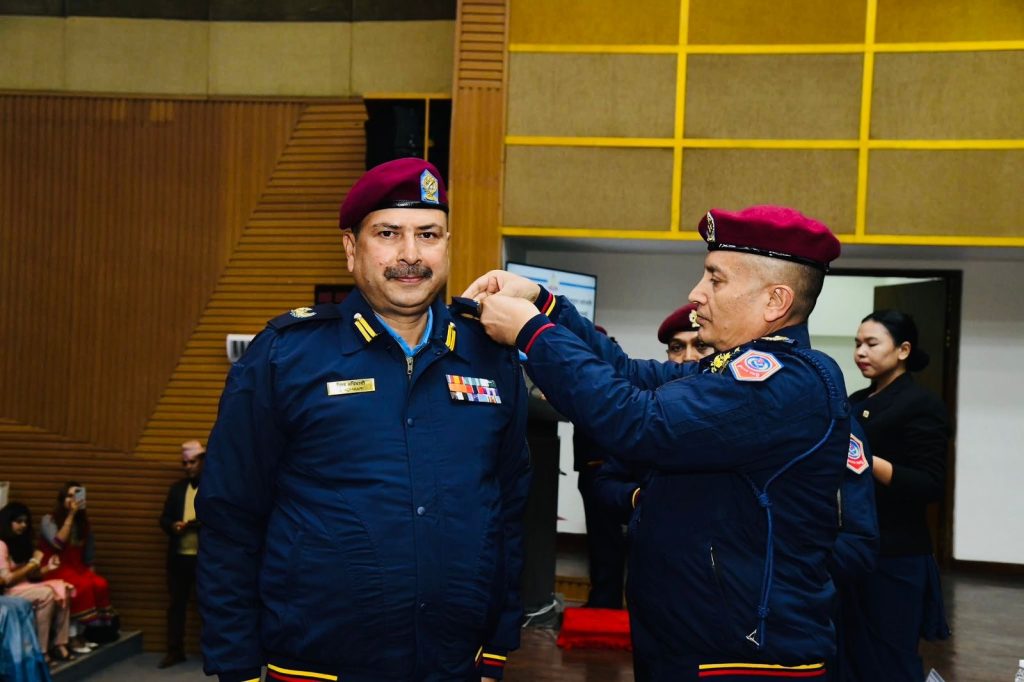 दर्ज्यानी चिन्ह पाउनेमा अतिरिक्त महानिरीक्षक ईश्वर कार्की, नायव महानिरीक्षक विश्व अधिकारी र प्राविधिक नायव महानिरीक्षक ई. राम कुमार चौधरी रहेका छन्।