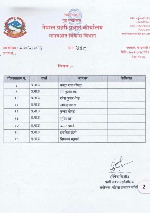 नेपाल प्रहरीको MPS परीक्षाको नतिजा प्रकाशित भएको छ। २०७० सालमा प्रहरी निरीक्षक पदमा भर्ना भएका प्रहरी नायब उपरीक्षक (प्र.ना.उ.) हरुले उक्त परीक्षामा सहभागिता जनाएका थिए। उक्त परीक्षामा १६ जना प्र.ना.उ. उत्तीर्ण भएका छन्।
