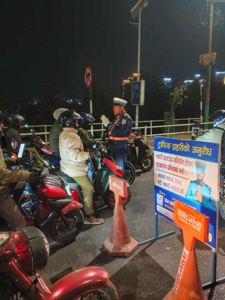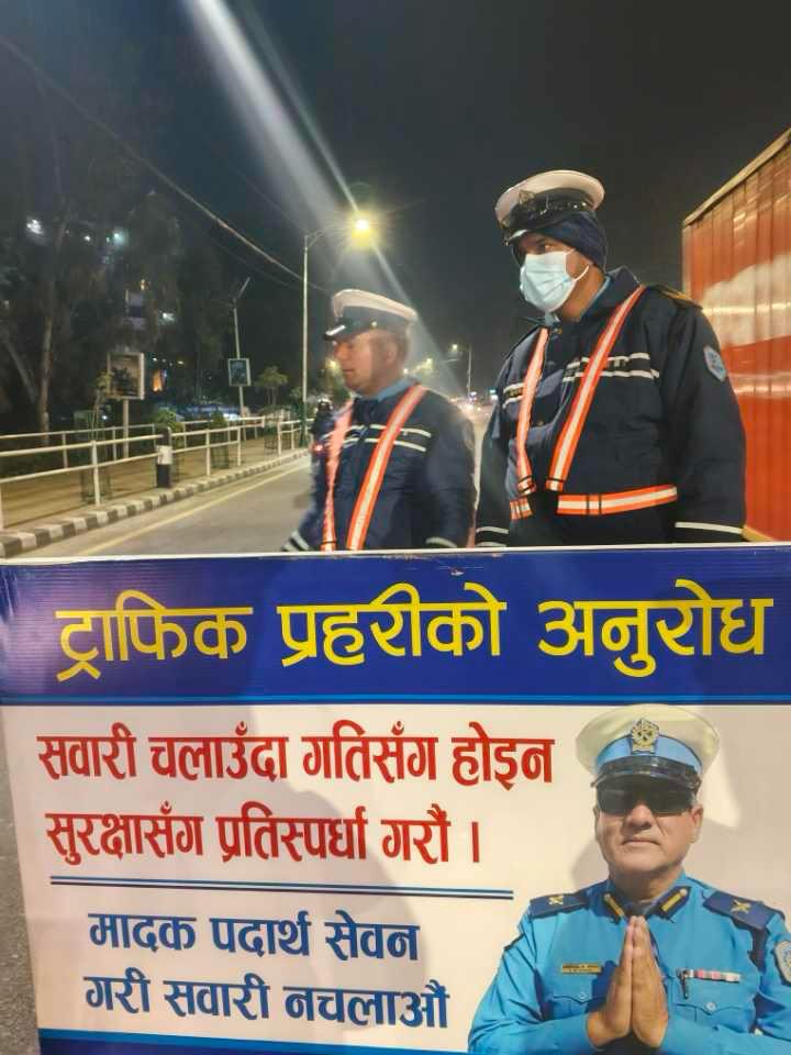 काठमाडौं उपत्यका ट्राफिक प्रहरी कार्यालयले रातको समयमा हुने सडक दुर्घटना न्यूनीकरणका लागि विशेष सचेतना अभियान सुरु गरेको छ।
