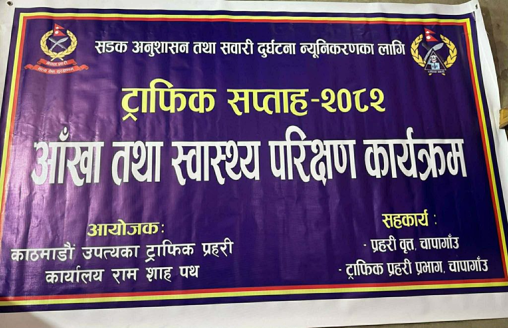 सडक प्रयोगकर्ताको स्वास्थ्य सचेतना अभिवृद्धि गर्दै सुरक्षित यातायात प्रवर्द्धन गर्ने उद्देश्यले आयोजित कार्यक्रममा सवारी चालक, सहचालक, स्थानीय बासिन्दा तथा सर्वसाधारणको उल्लेख्य सहभागिता रहेको थियो। कार्यक्रममा सहभागीहरूको आँखा परीक्षण, रक्तचाप जाँच, सामान्य स्वास्थ्य परीक्षण तथा आवश्यक परामर्श प्रदान गरिएको थियो।