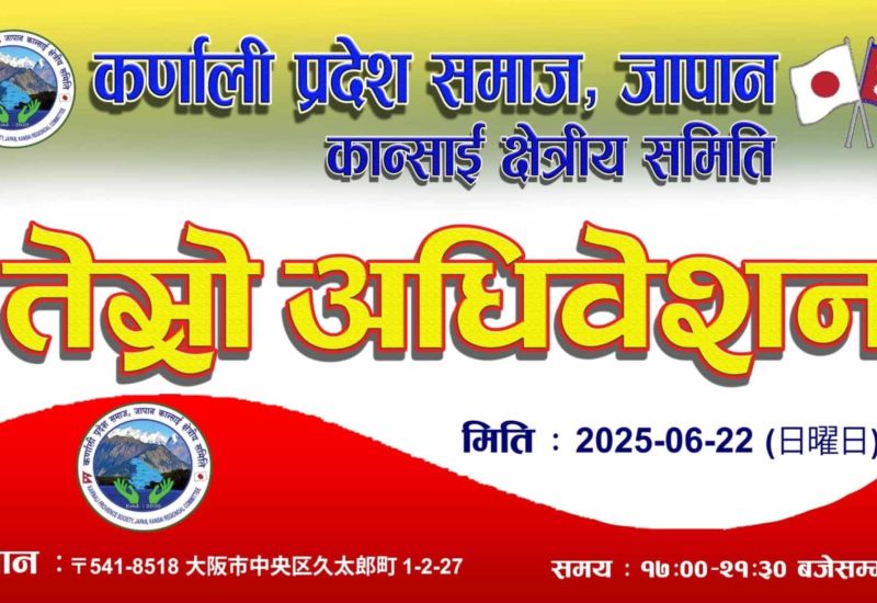कर्णाली प्रदेश समाज, जापान (कान्साई क्षेत्रीय समिति) को तेस्रो अधिवेशन हुँदै