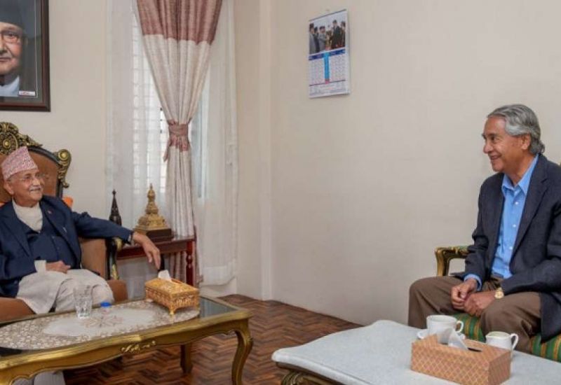 गठबन्धनबाट एक्लिएका ओली देउवा भेट्न पुगे