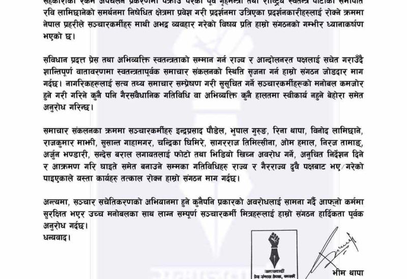 पत्रकारमाथि हुने आक्रमण रोक्न माग
