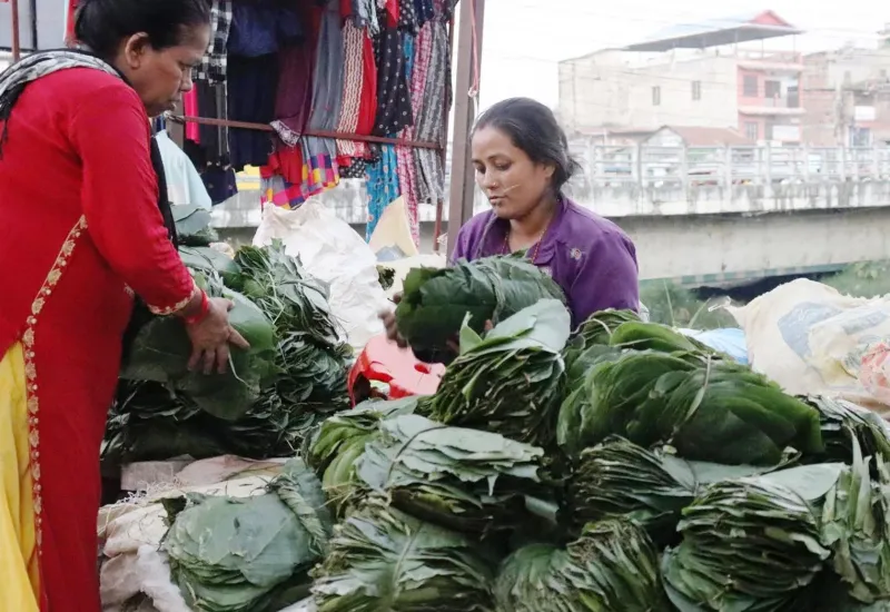 सालको पात बेचेर खर्च जुटाउँदै महिला