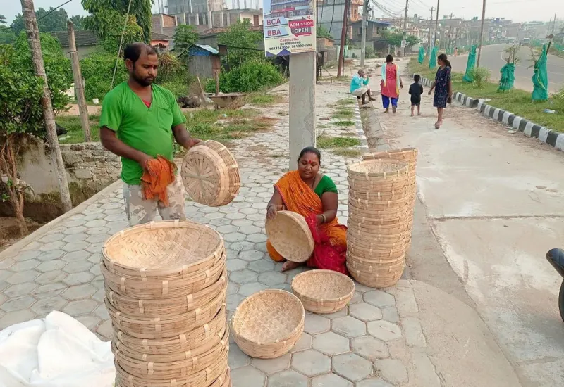 मिथिला क्षेत्रका डोम र बिन समुदायका मानिस चङेरा, ढकी, छिटी बनाउन व्यस्त
