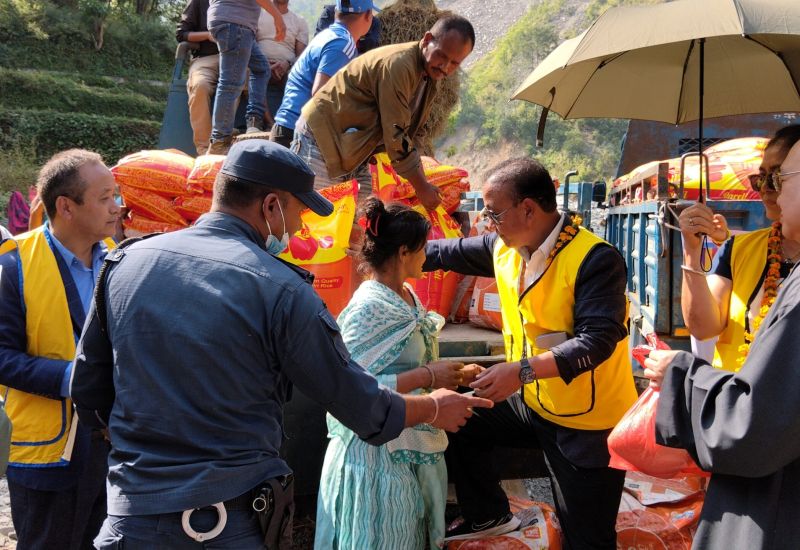 रोशी गााँउपालिका ३ का बाढीपीडितलाई खाद्यान्न वितरण