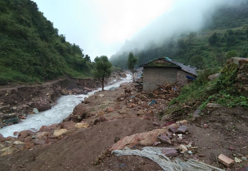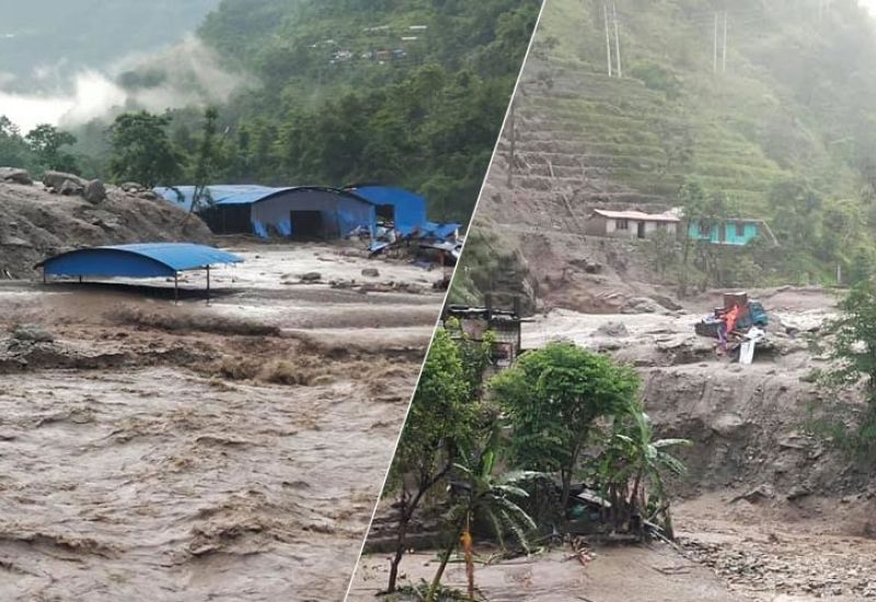 सिन्धुपाल्चोकमा बाढी : सडक अवरुद्ध, हेलम्बुको फाँट ढुवानमा