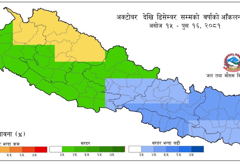आउँदो ३ महिनाको हावापानी आकलन : ५ प्रदेशमा सरदरभन्दा बढी वर्षा हुने