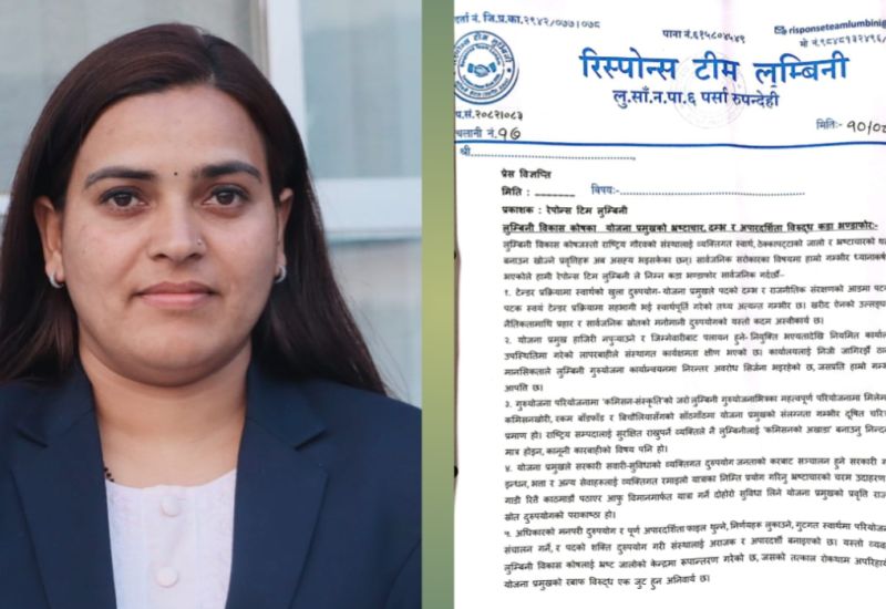 लुम्बिनी । लुम्बिनी विकास कोषकी योजना प्रमुख स्मिता भट्टलाई निलम्बन गर्न स्थानीय युवाहरुको संस्था रेस्पोन्स टिम लुम्बिनीले माग गरेको छ ।