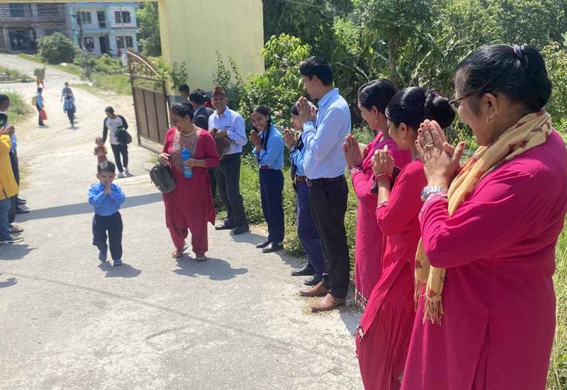 शिक्षकले विद्यार्थीलाई नमस्कार गर्दा …