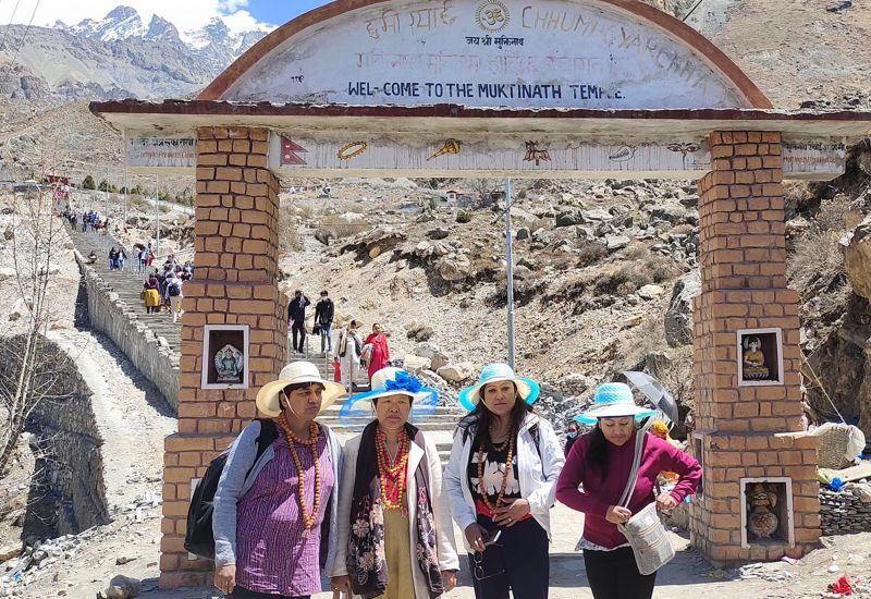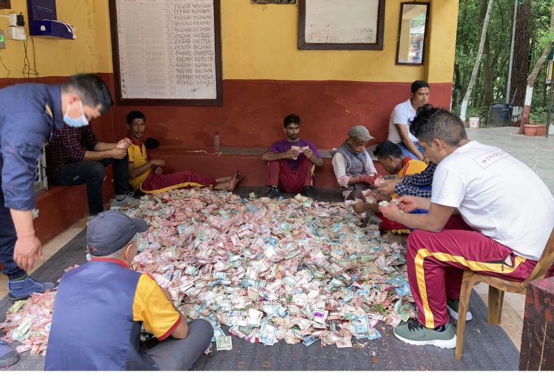 बागलुङको कालिका मन्दिरमा भेटी गन्दै