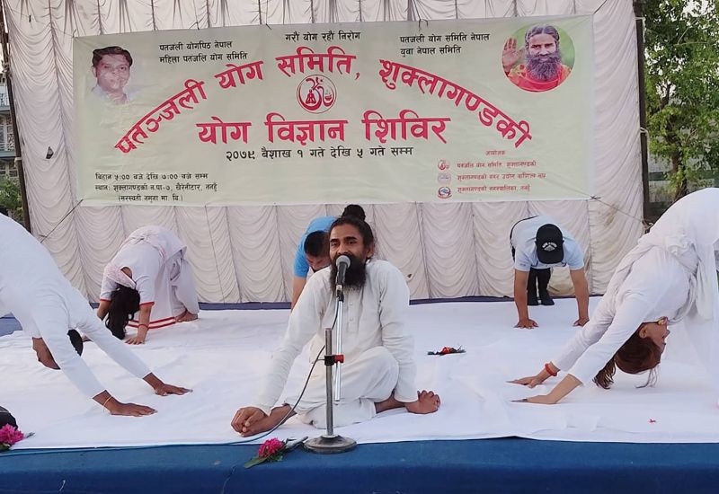 योगभ्यास सिकाउँदै प्रशिक्षक