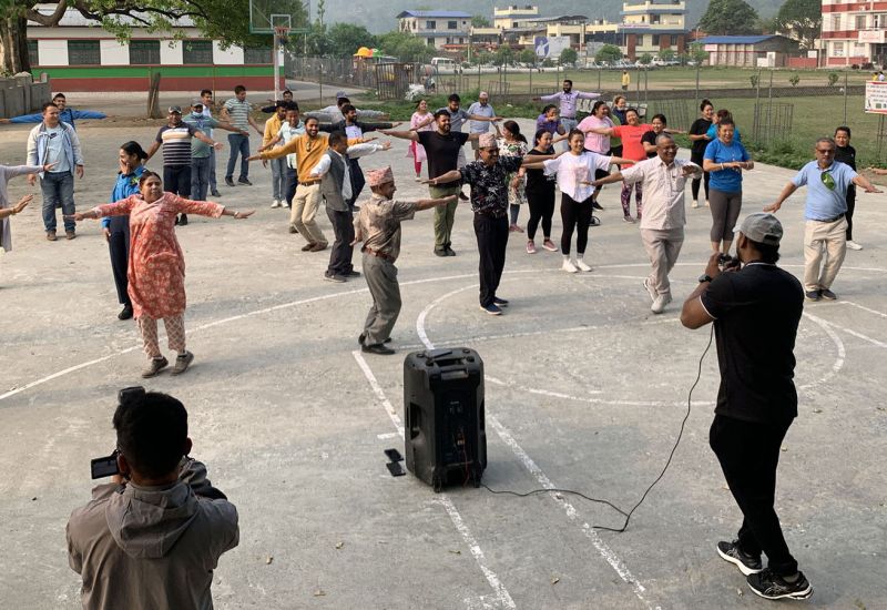 विश्व स्वास्थ्य दिवसको अवसरमा व्यायाम सिक्दै सर्वसाधारण