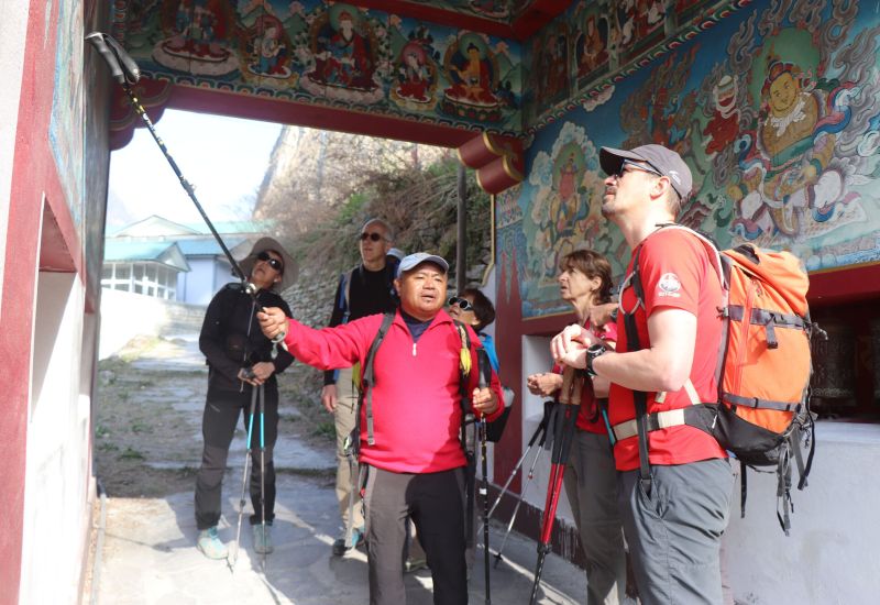 बुद्धको कलात्मक चित्रबारे जानकारी गराइँदै