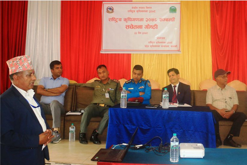 राष्ट्रिय कृषिगणना कार्यालय कास्कीद्वारा मङ्गलबार पोखरामा आयोजित कृषि गणना २०७८ सम्बन्धी सचेतना गोष्ठीमा सहभागी सरोकारवाल ।