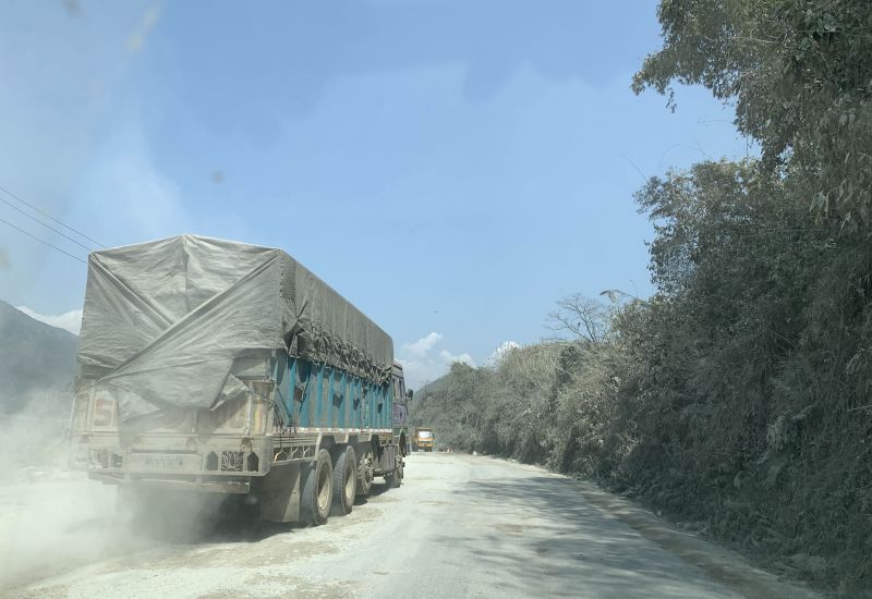 पृथ्वी राजमार्गअन्तर्गत तनहुँको शुक्लागण्डकीस्थित धुलाम्य बाटो