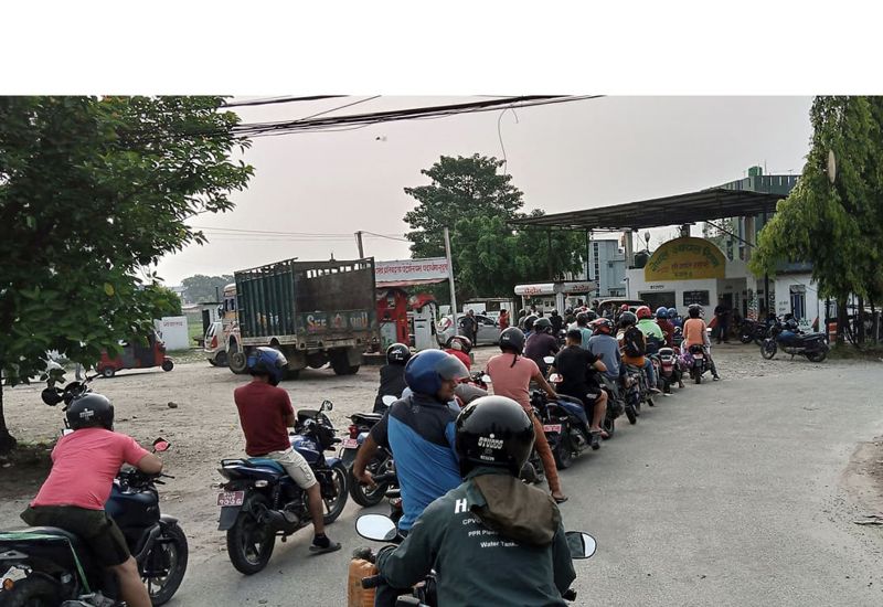 पेट्रोल भर्न पालो पर्खिदै नागरिक