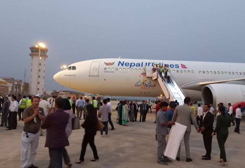 नेपाल वायुसेवा निगमको जहाजमा आइतबार चारसय ६० लिटर इन्धन रिफ्युल गरिएको नेपाल आयल निगमका प्रदेश प्र…