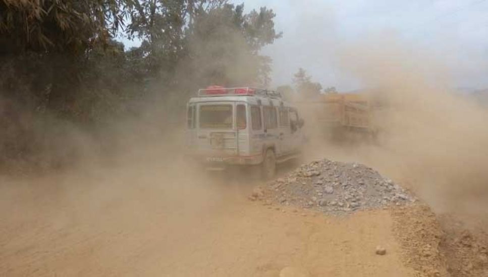 धुलो नियन्त्रण गर्न माग गर्दै सडक अवरुद्ध
