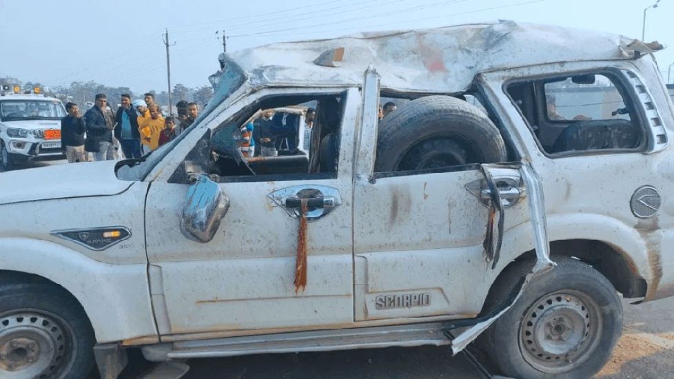 महाकुम्भ मेलाबाट फर्किंदै गरेको स्कोर्पियो गाडी अनियन्त्रित भएर पल्टिँदा पाँ…