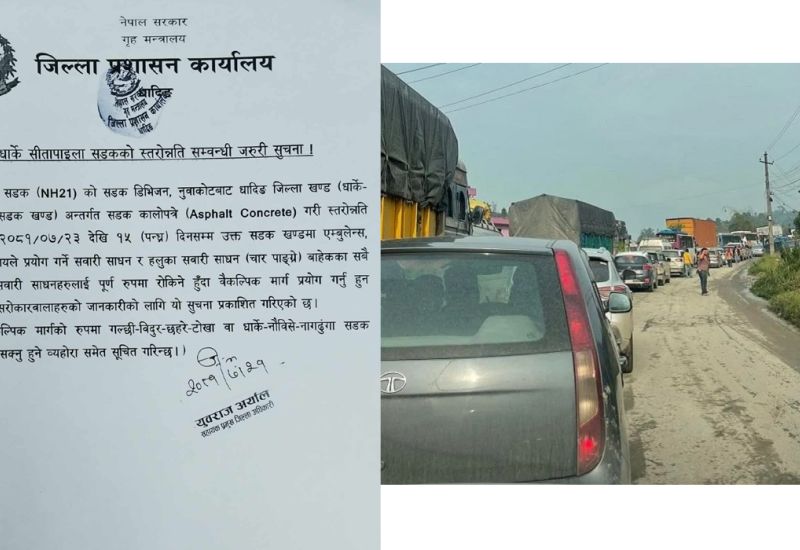 सीतापाइला-धार्के सडक पुन: १५ दिनका लागि बन्द